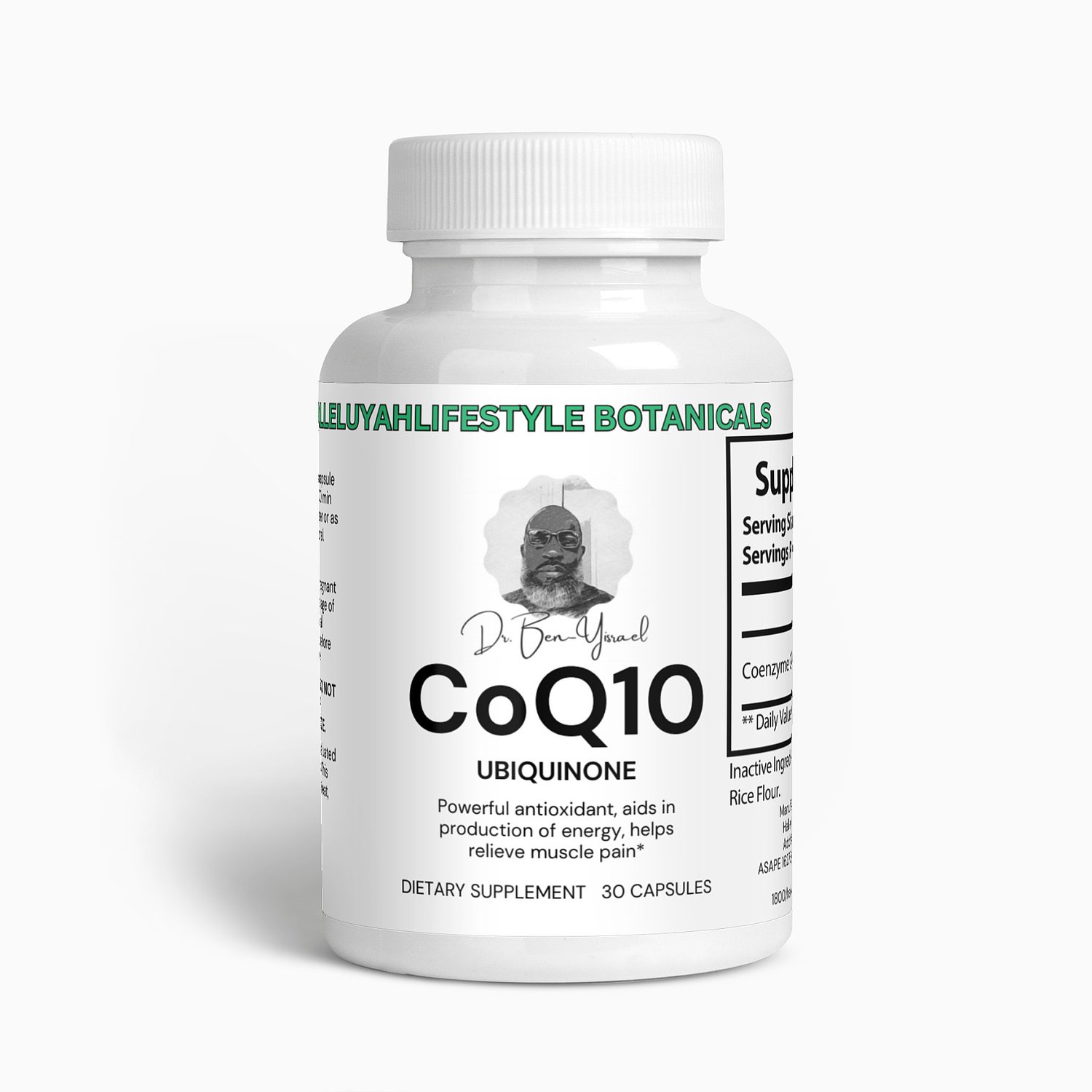 Ingredients: Coenzyme Q-10 (Ubiquinone), Cellulose (vegetable capsule), Rice Flour.